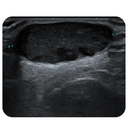 1.医生通过触诊及B超检查进行初步诊断。B超检查主要了解肿瘤的大小、性质、位置及血流情况。(*钙化上皮瘤有特征性表现:内部可见钙化灶;图左-表皮囊肿申宝配资,图右-钙化上皮瘤 )