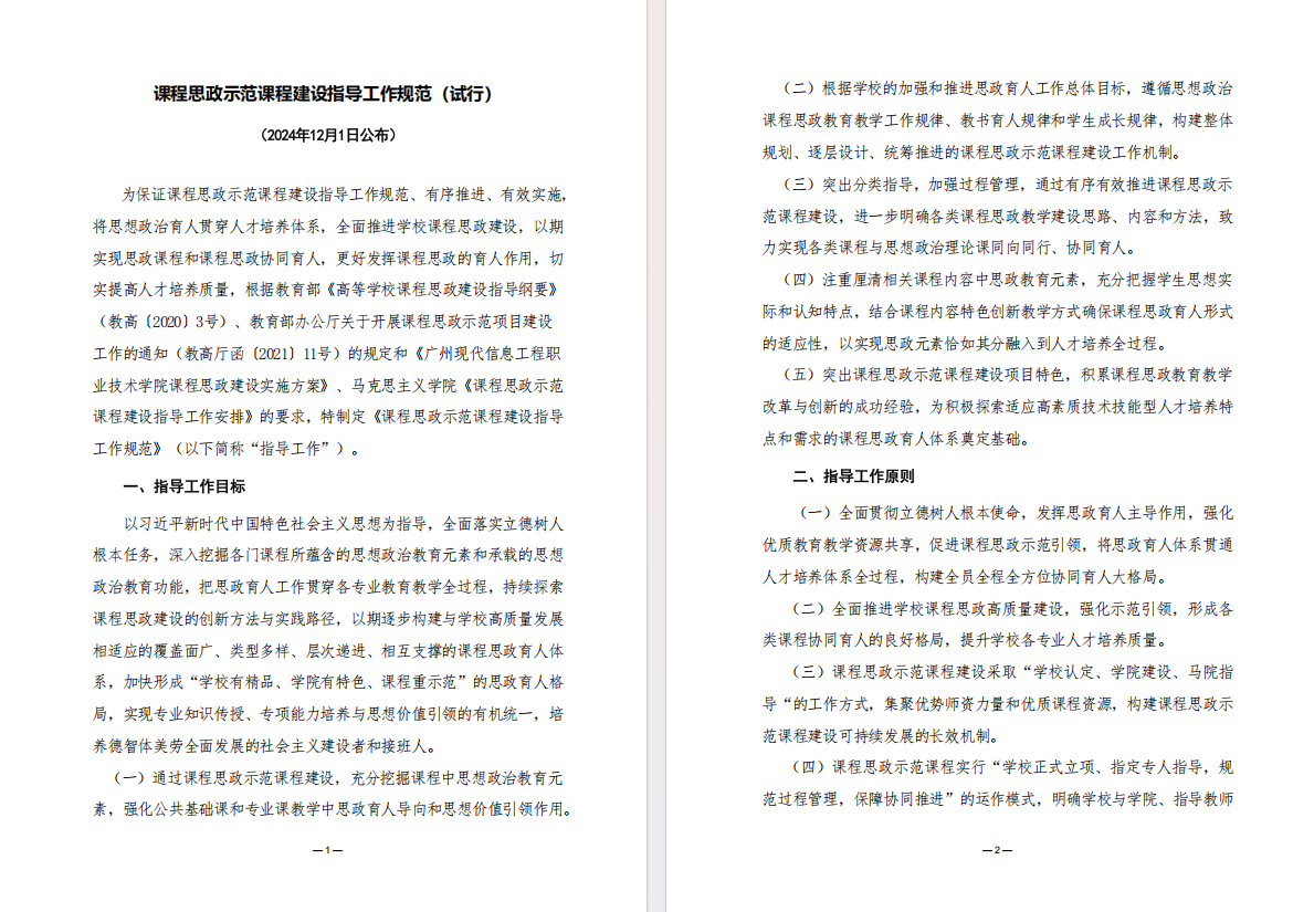 全面推进课程思政建设,实现思政课程和课程思政协同育人,是提高人才培养质量,构建“全员、全过程、全方位育人”工作格局的重要途径。我校马克思主义学院按照《广州现代信息工程职业技术学院课程思政建设实施方案》要求选派思政课程优质师资参与各学院协同推进课程思政建设,有序有效完成2024年度(第二届)校级立项的课程思政示范课程建设指导工作,参与评审的课程思政示范课程建设64个立项项目中评定出优秀15项、优秀案例30项。