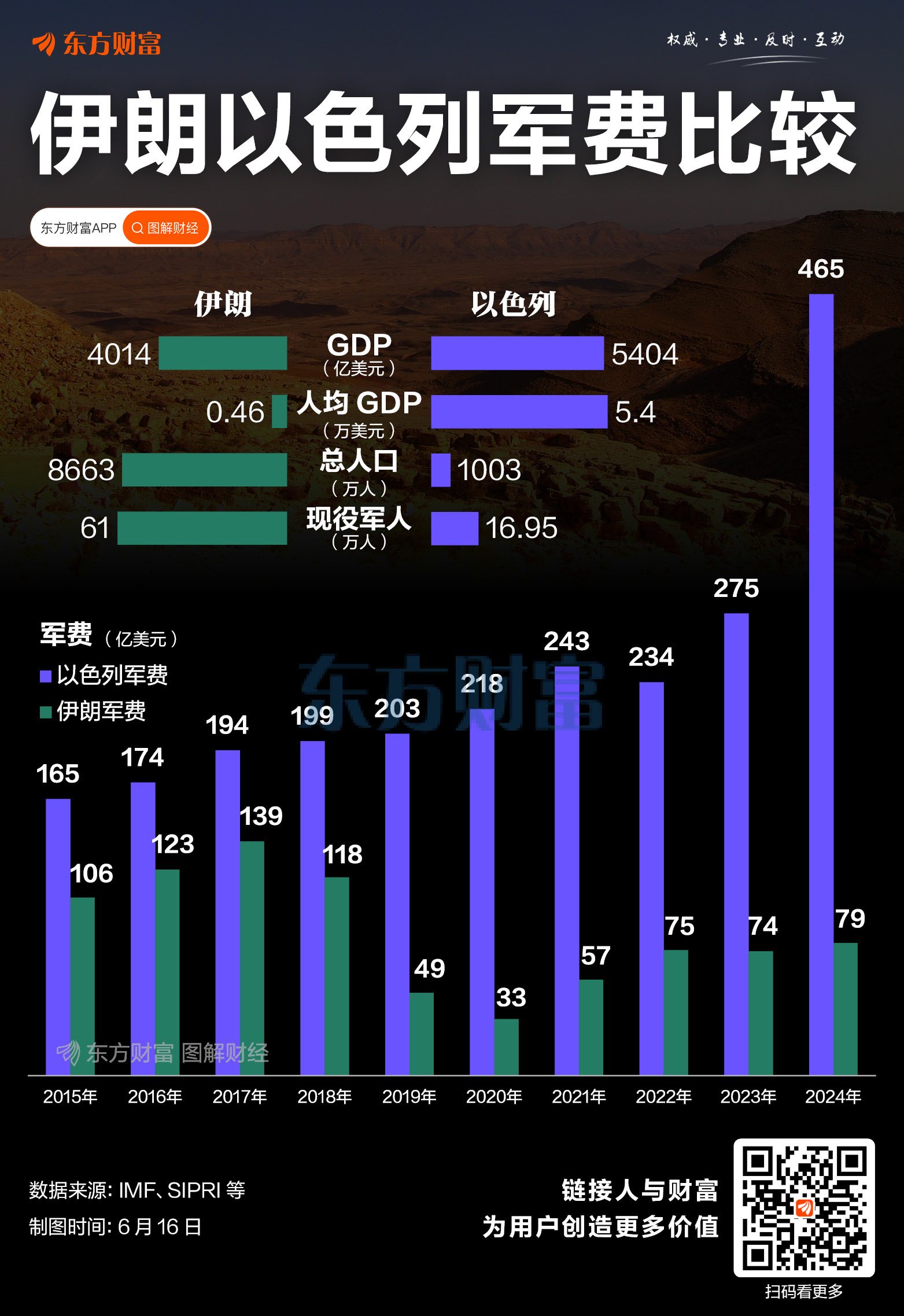 IMF(国际货币基金组织)的数据显示,2024年,伊朗的人口为8663万人京融实配,GDP为4014亿美元;以色列人口为1003万人,GDP为5404亿美元。伊朗的人口是以色列的8倍有余,但GDP却不足以色列的3/4,以色列人均GDP高达5.4万美元,是伊朗的11倍有余。