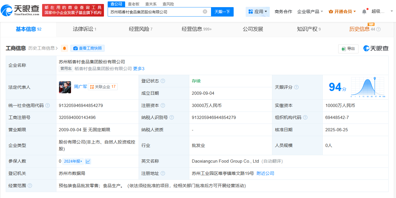 每经AI快讯,天眼查App显示牛达人配资,近日,苏州稻香村食品集团股份有限公司发生工商变更,注册资本由1亿元人民币增至3亿元人民币,增幅200%。该公司成立于2009年9月,法定代表人为周广军,经营范围包括预包装食品批发零售、食品生产,由周立源、苏州稻香村食品有限公司共同持股。